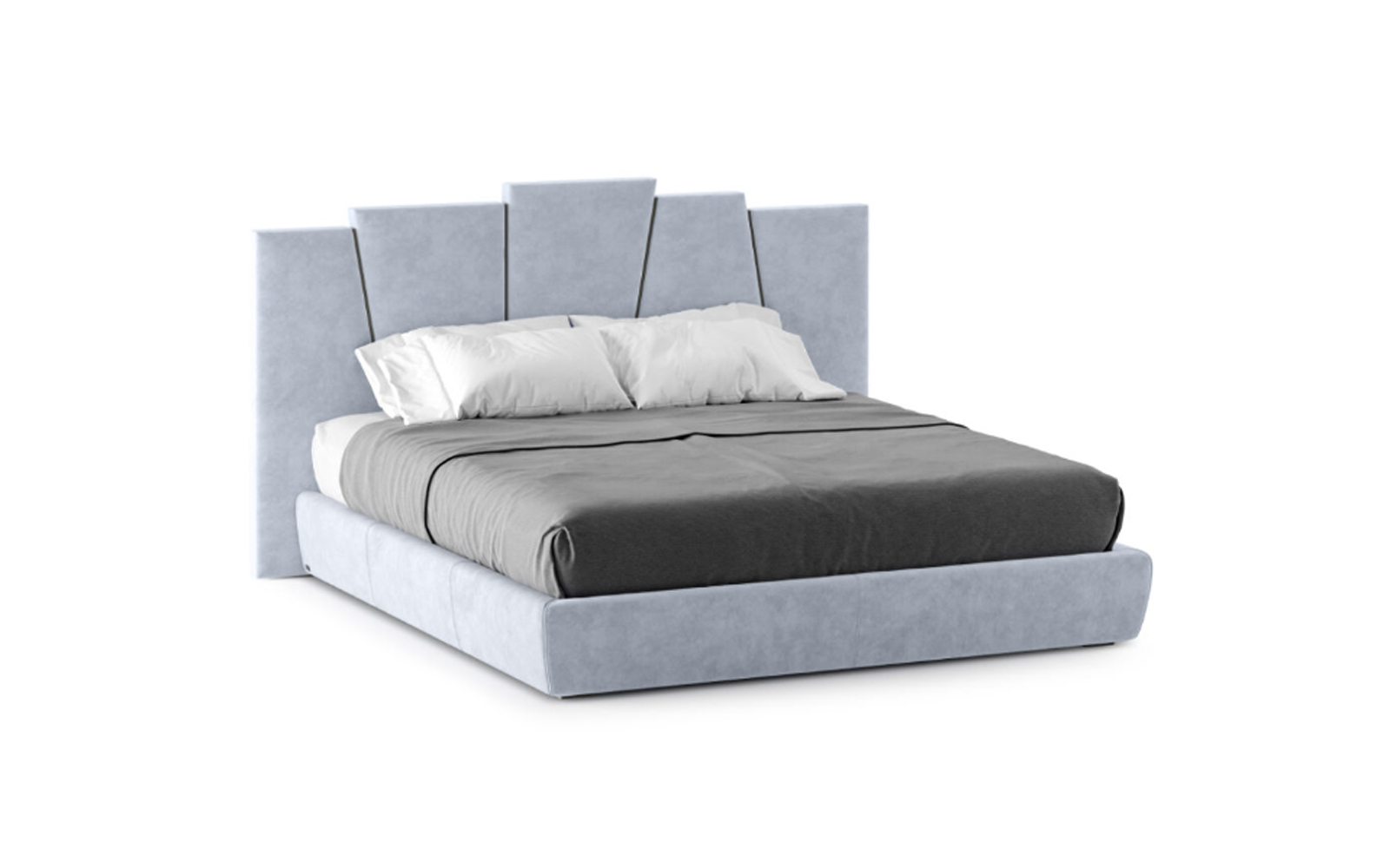 • Pat tapițat premium, cu tăblie înaltă și design modular, din panouri verticale ușor evazate, ce creează un efect vizual sculptural.