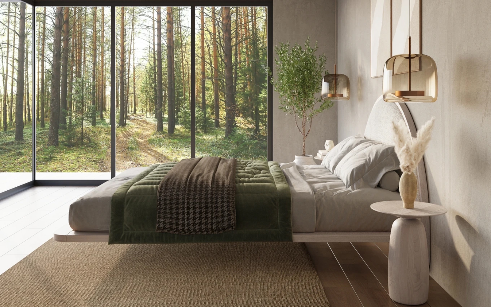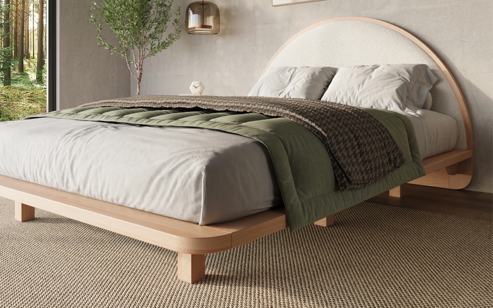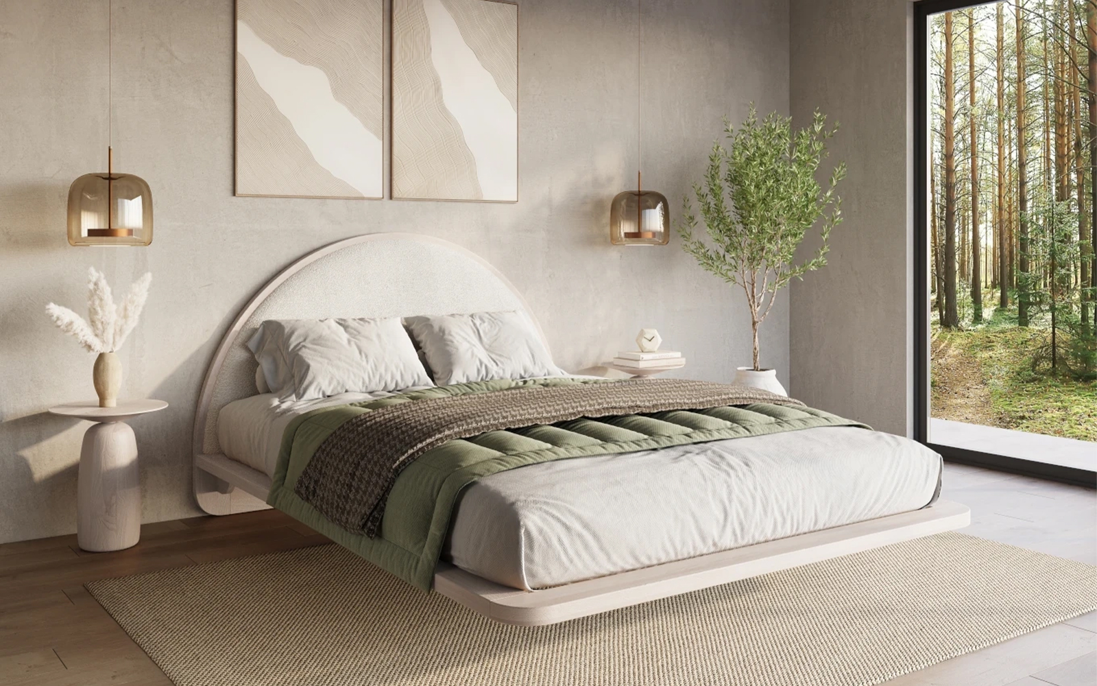 • Design Japandi cu siluetă minimală și efect de levitație datorat picioarelor retrase