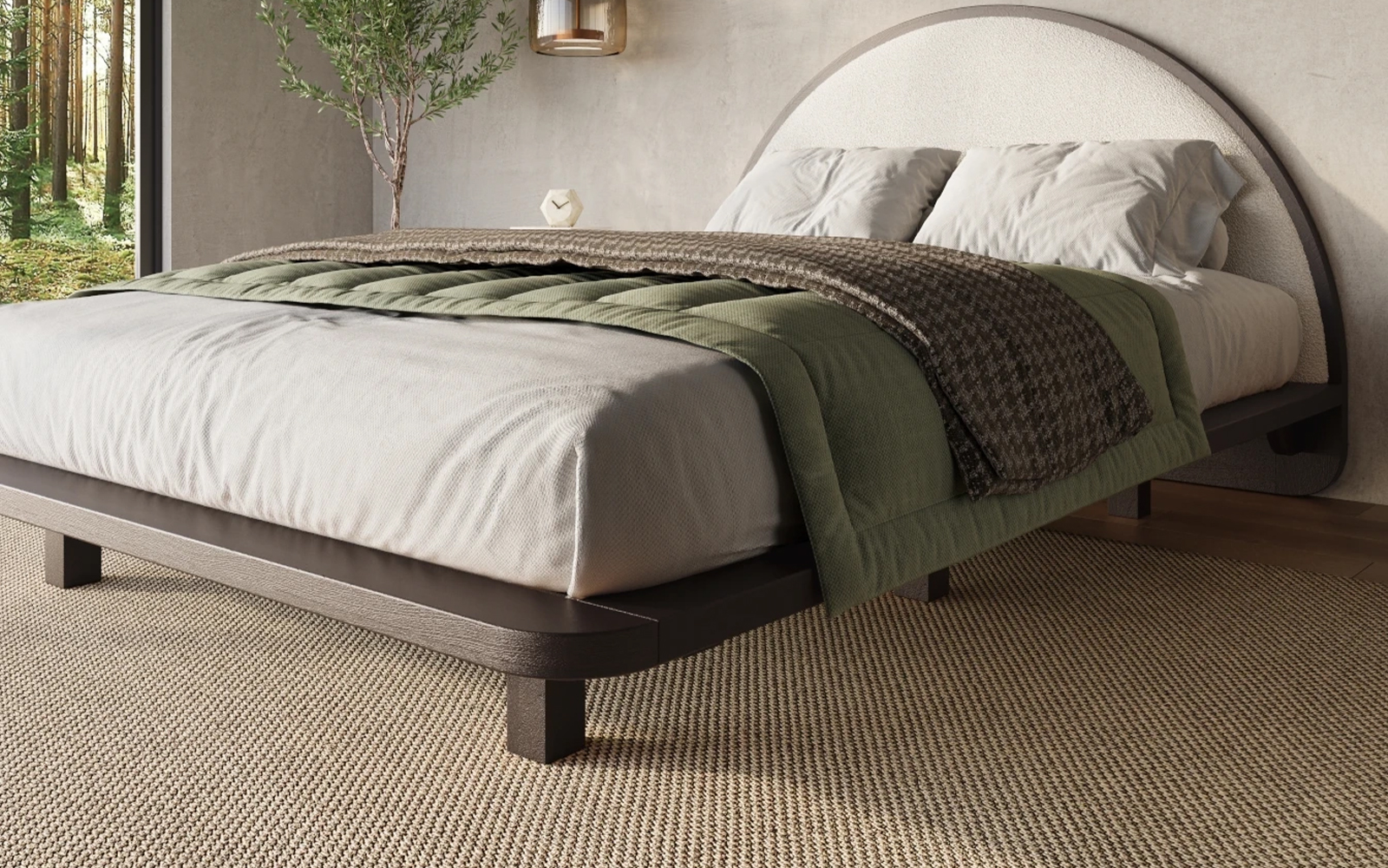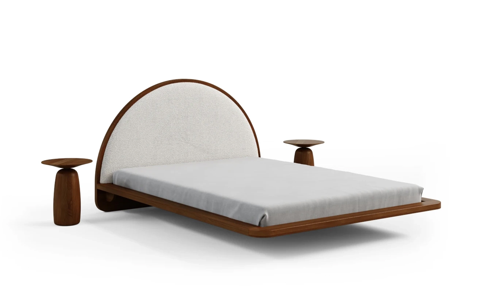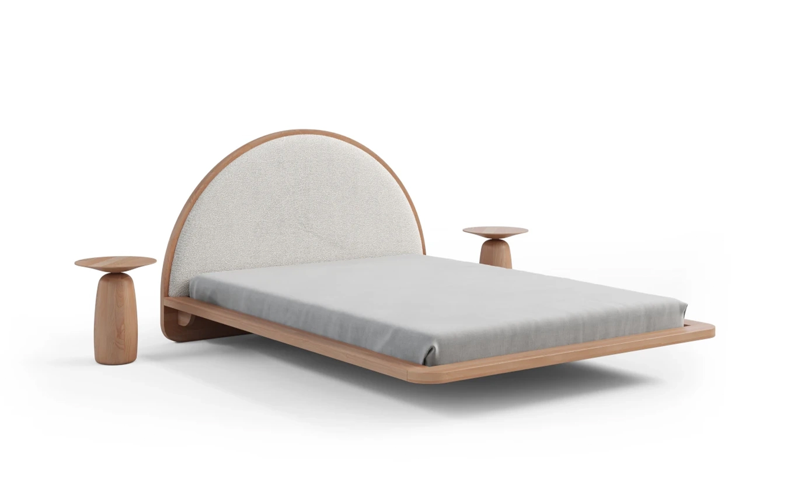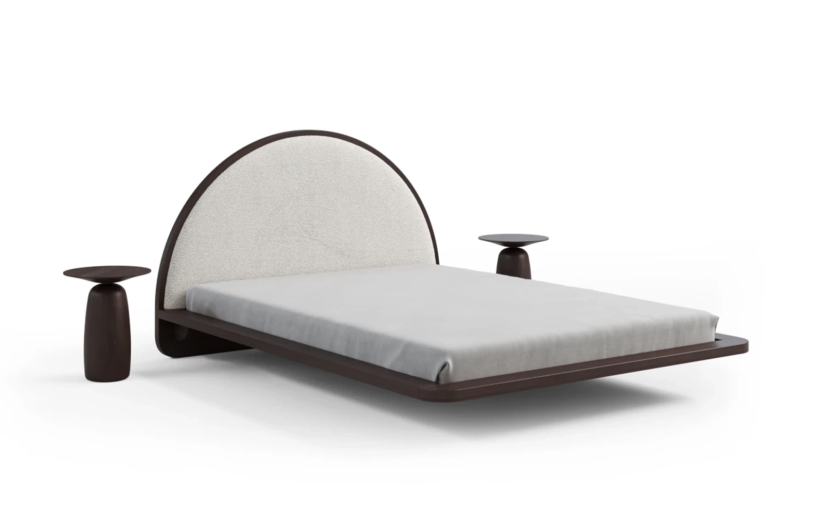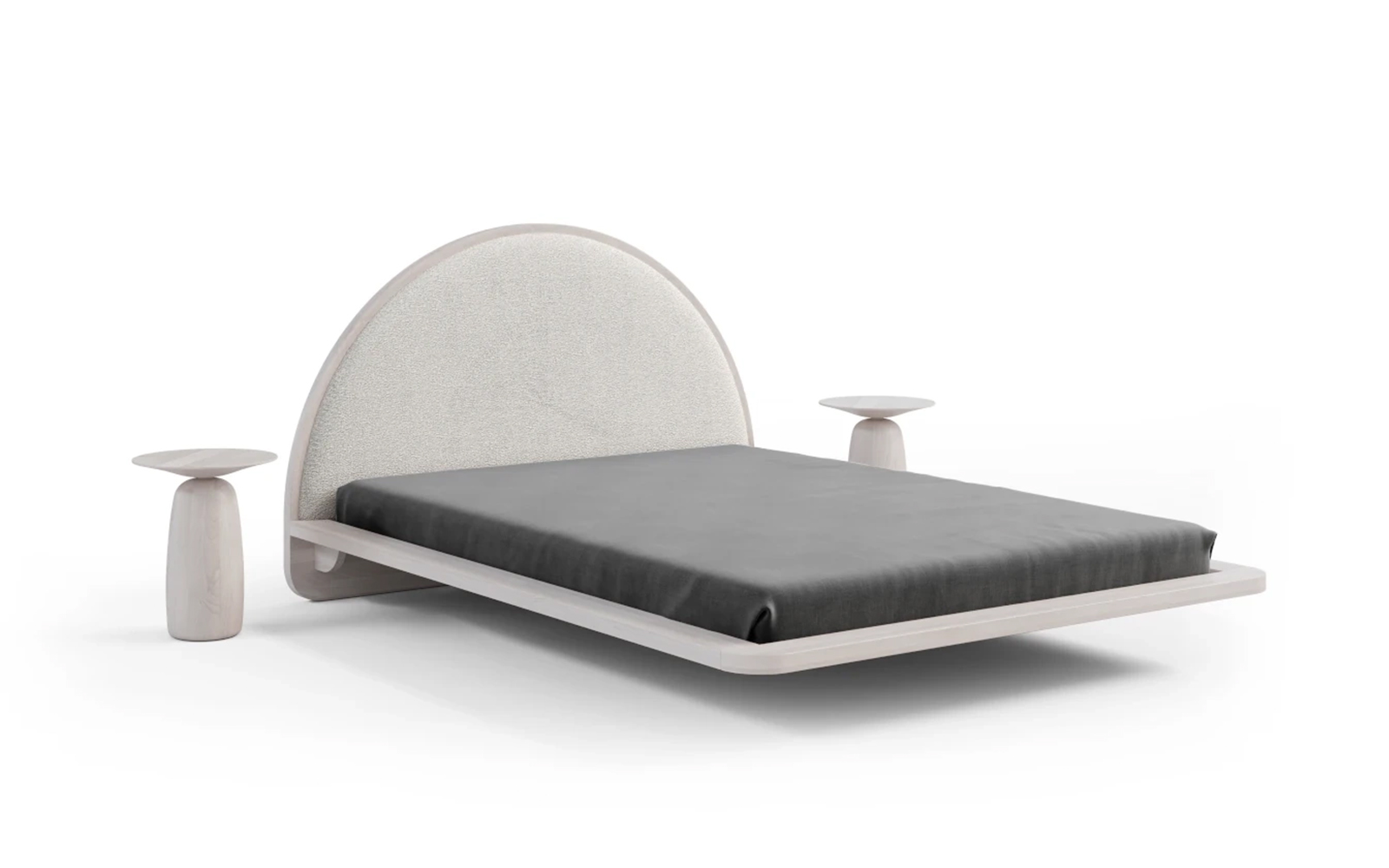 Cadrul masiv, cu grosimea de 4 cm și lățimea de 12,5 cm, încadrează discret salteaua și poate susține mici obiecte precum o carte sau un telefon. Muchiile rotunjite adaugă un plus de rafinament, dar și siguranță, iar efectul vizual de levitație este obținut prin cele șase picioare retrase aproape complet sub structură, făcând ca patul să pară suspendat în aer.