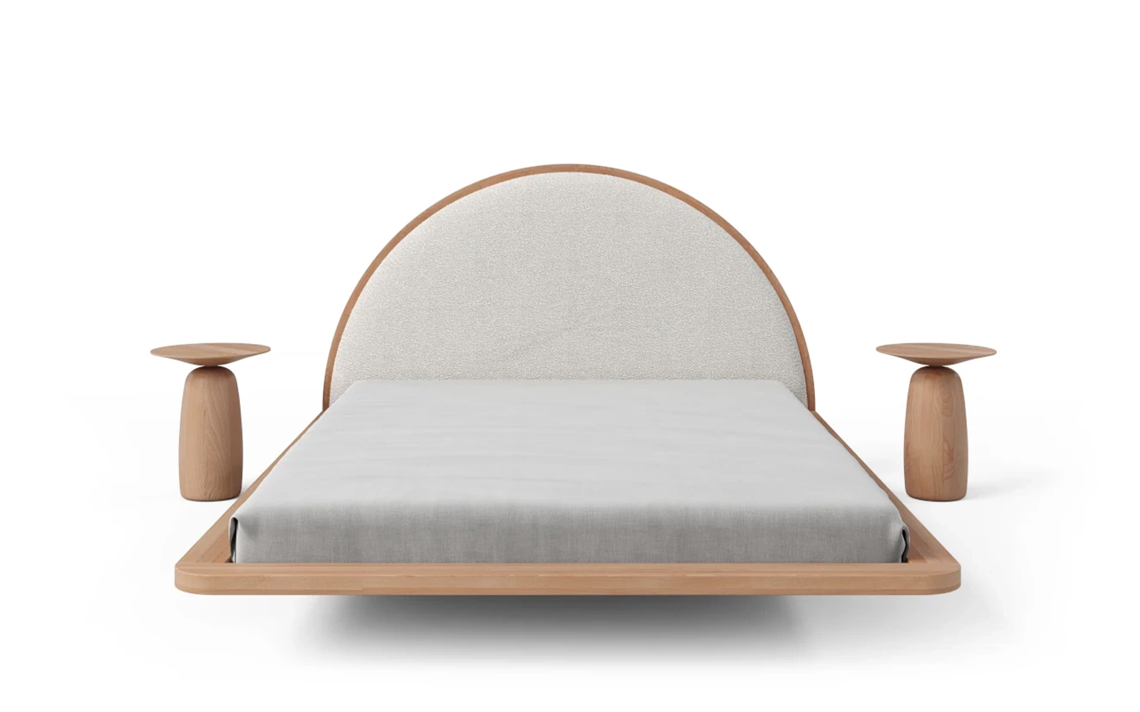Forma lină, rotunjită, se continuă în tăblia ovală tapițată cu bouclé Catch Me 01, un material dens, moale, extrem de plăcut la atingere, cu rezistență la abraziune de peste 100.000 cicluri. Textura buclată ascunde elegant eventualele urme sau zgârieturi fine, iar aspectul său natural completează perfect estetica calmă a patului.