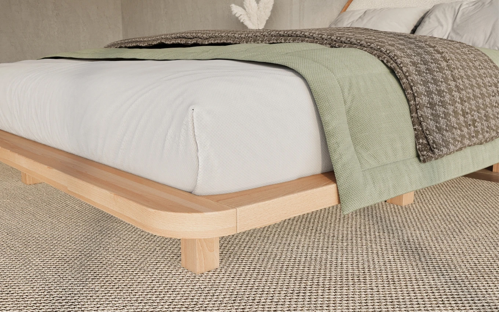 Visby MOMOKO este un pat nerabatabil și nu include spațiu de depozitare, fiind conceput pentru a păstra liniile curate și echilibrul estetic specific stilului Japandi. Montajul este simplu și intuitiv, iar construcția internă cu trei traverse și picioare invizibile asigură o stabilitate excelentă în utilizare. Rezultatul este o piesă centrală care transformă dormitorul într-un spațiu calm, aerisit și plin de armonie.
