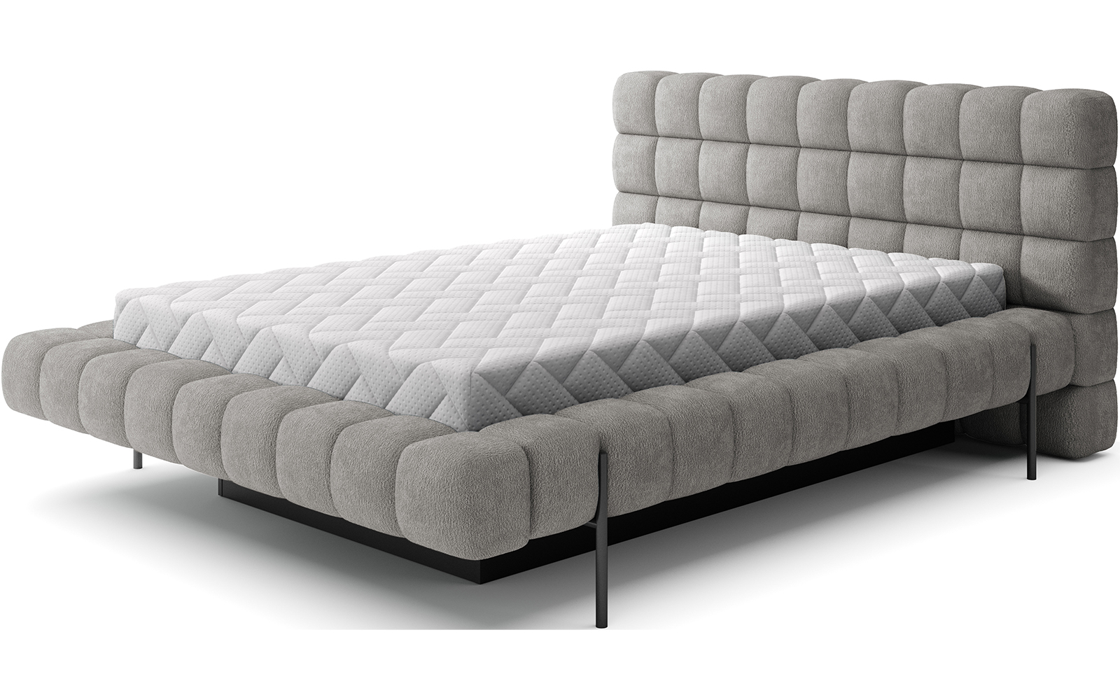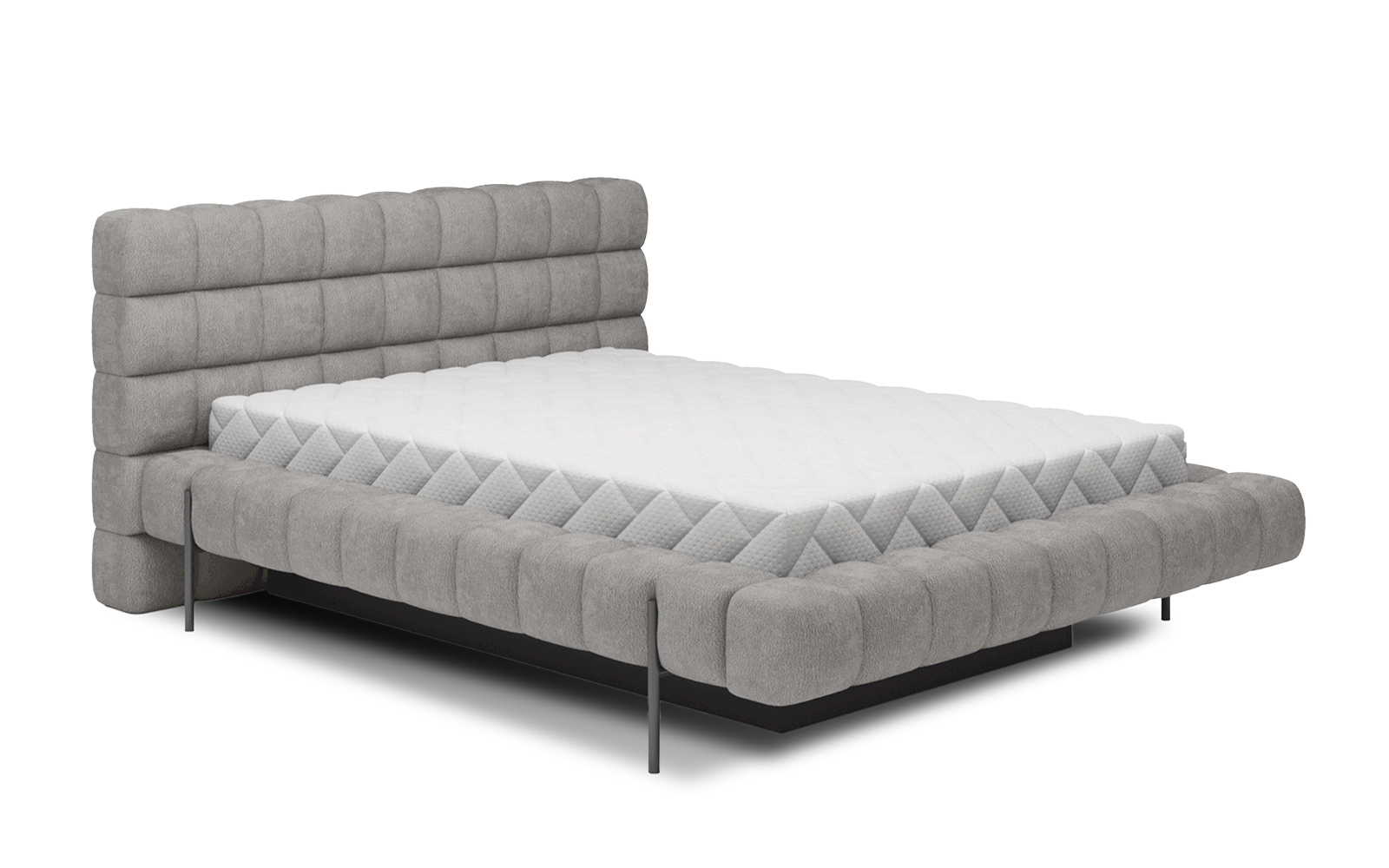 Pat tapițat modern, cu design geometric matlasat.