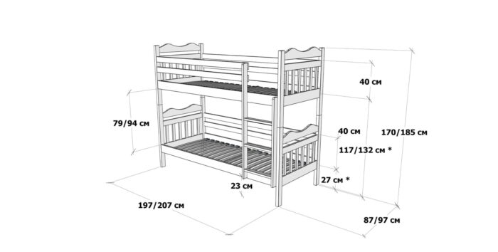 Pentru siguranță, nivelul superior este prevăzut cu protecții laterale solide, iar baza pentru saltea este realizată din lamele ortopedice curbate, care asigură susținere optimă și confort în timpul somnului.