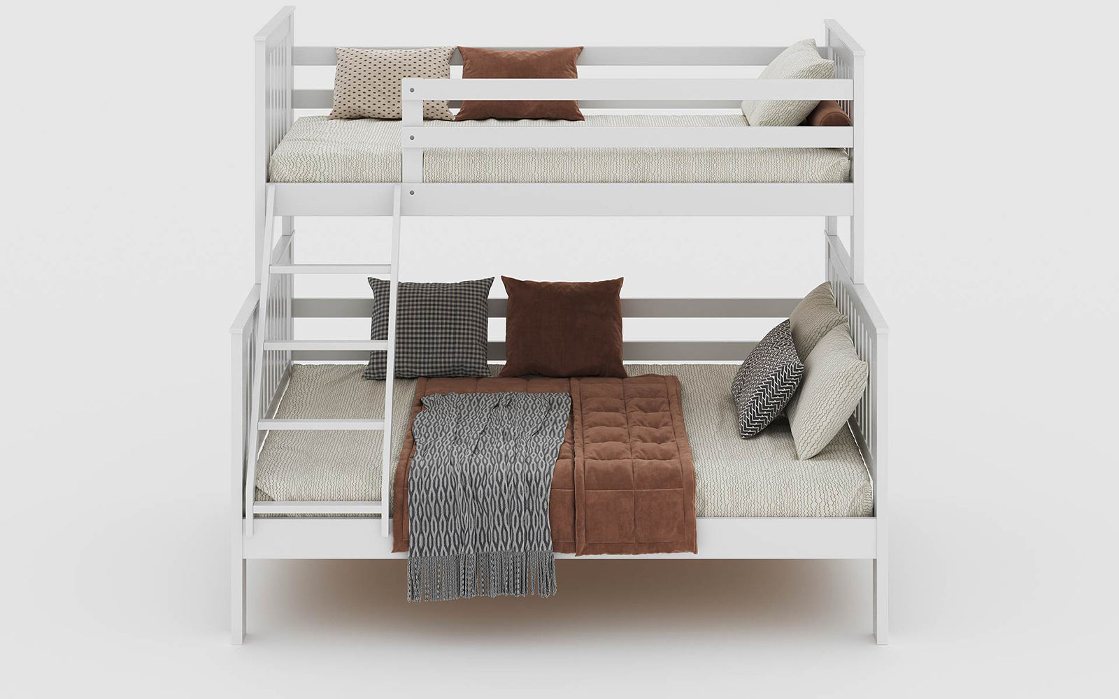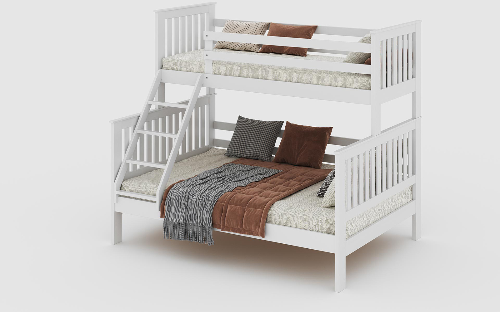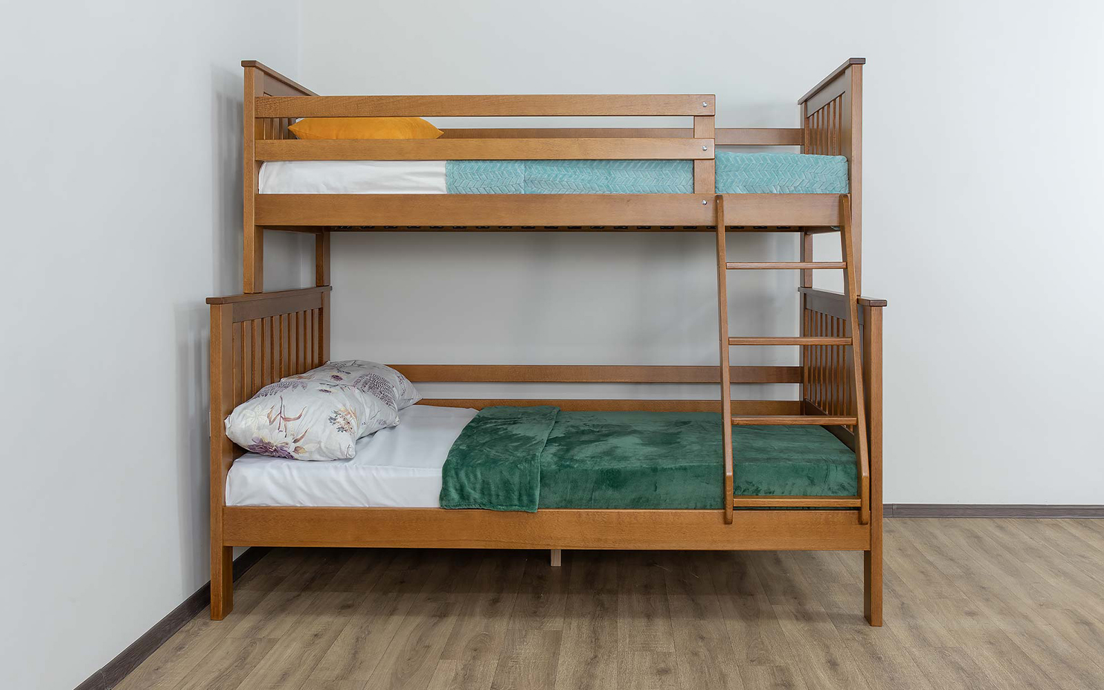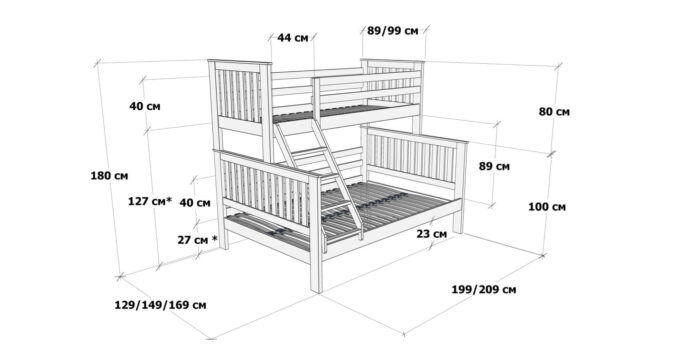Structura supraetajată este gândită pentru a economisi spațiu, fiind ideală pentru camerele mai mici sau pentru familiile cu mai mulți copii. Accesul la nivelul superior este facilitat de o scară robustă, cu montaj flexibil, ce poate fi poziționată în funcție de necesități.