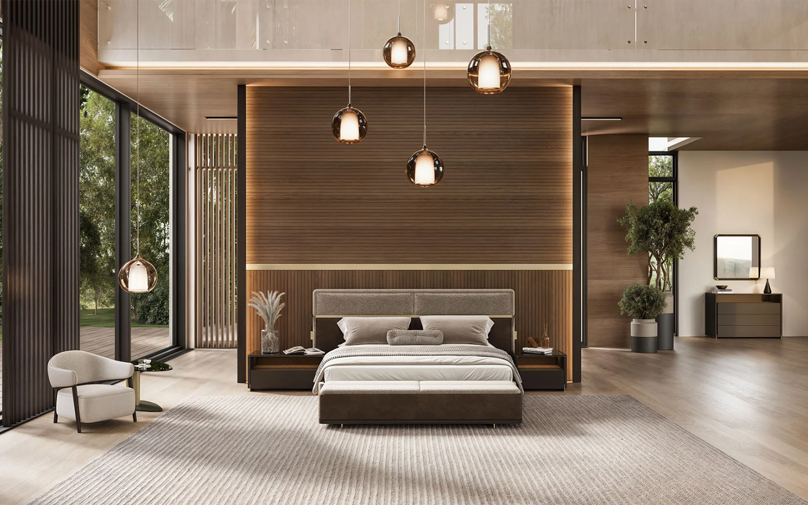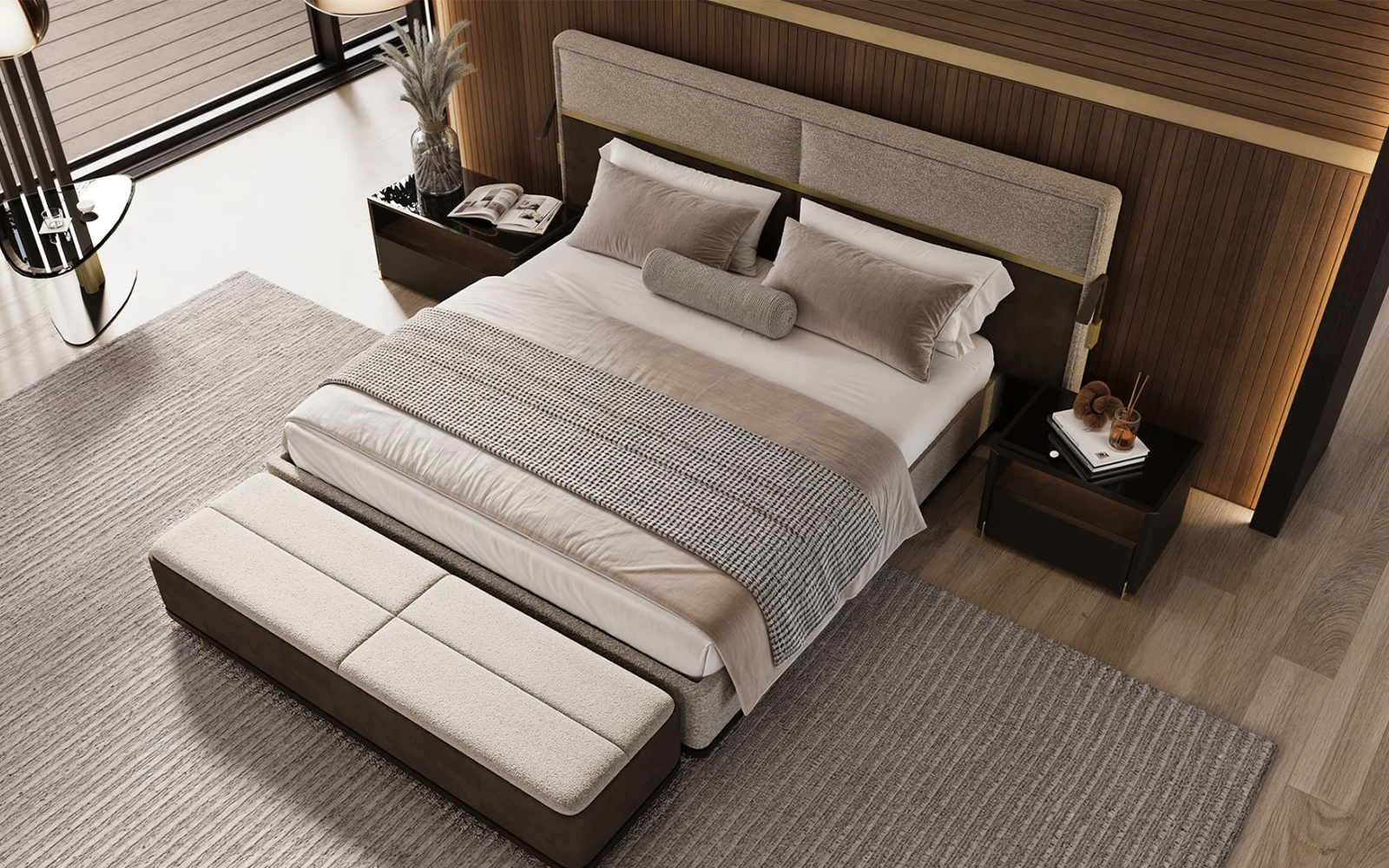 Modelul permite integrarea armonioasă alături de noptiere, comode și dulapuri din colecții contemporane, contribuind la realizarea unui ambient coerent, sofisticat și extrem de confortabil.