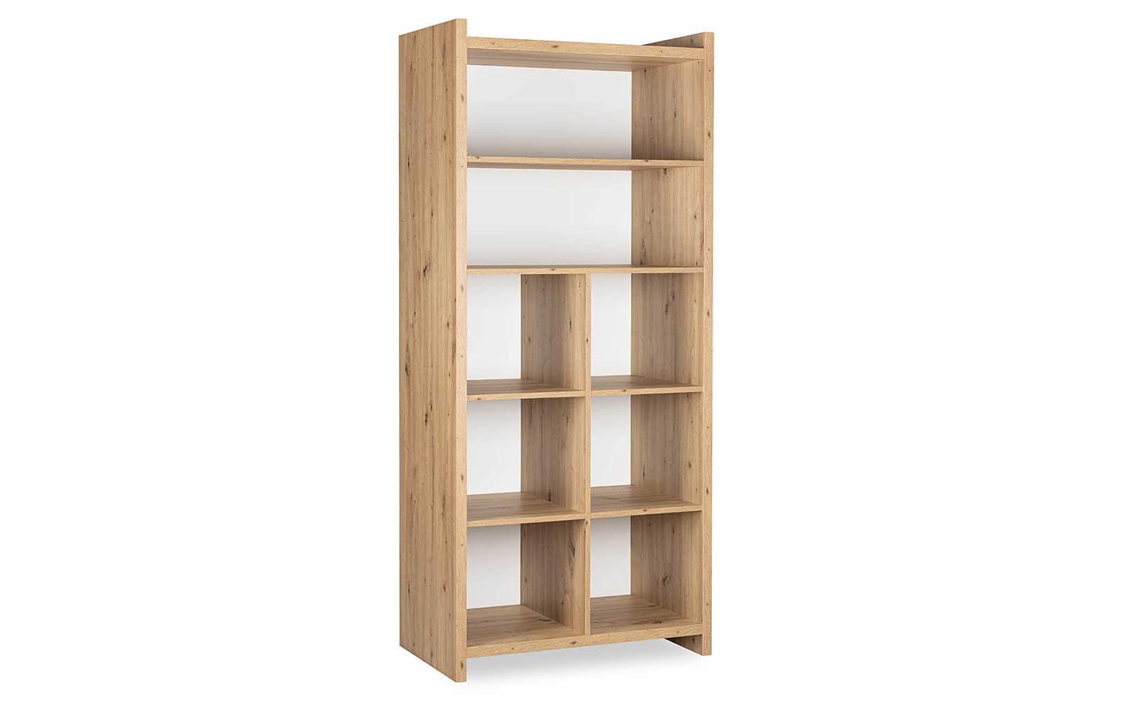 Structura sa înaltă și bine proporționată, cu dimensiunile de 84 × 190 × 50 cm, este gândită pentru a răspunde nevoilor variate de organizare și depozitare, oferind rafturi generoase și bine compartimentate. Acestea permit aranjarea elegantă a cărților, a jucăriilor, a cutiilor decorative sau a obiectelor personale, transformând spațiul într-unul ordonat și plăcut vizual. Designul vertical conferă, în același timp, senzația de înălțime și eleganță, integrându-se armonios chiar și în încăperi mai reduse ca dimensiune.