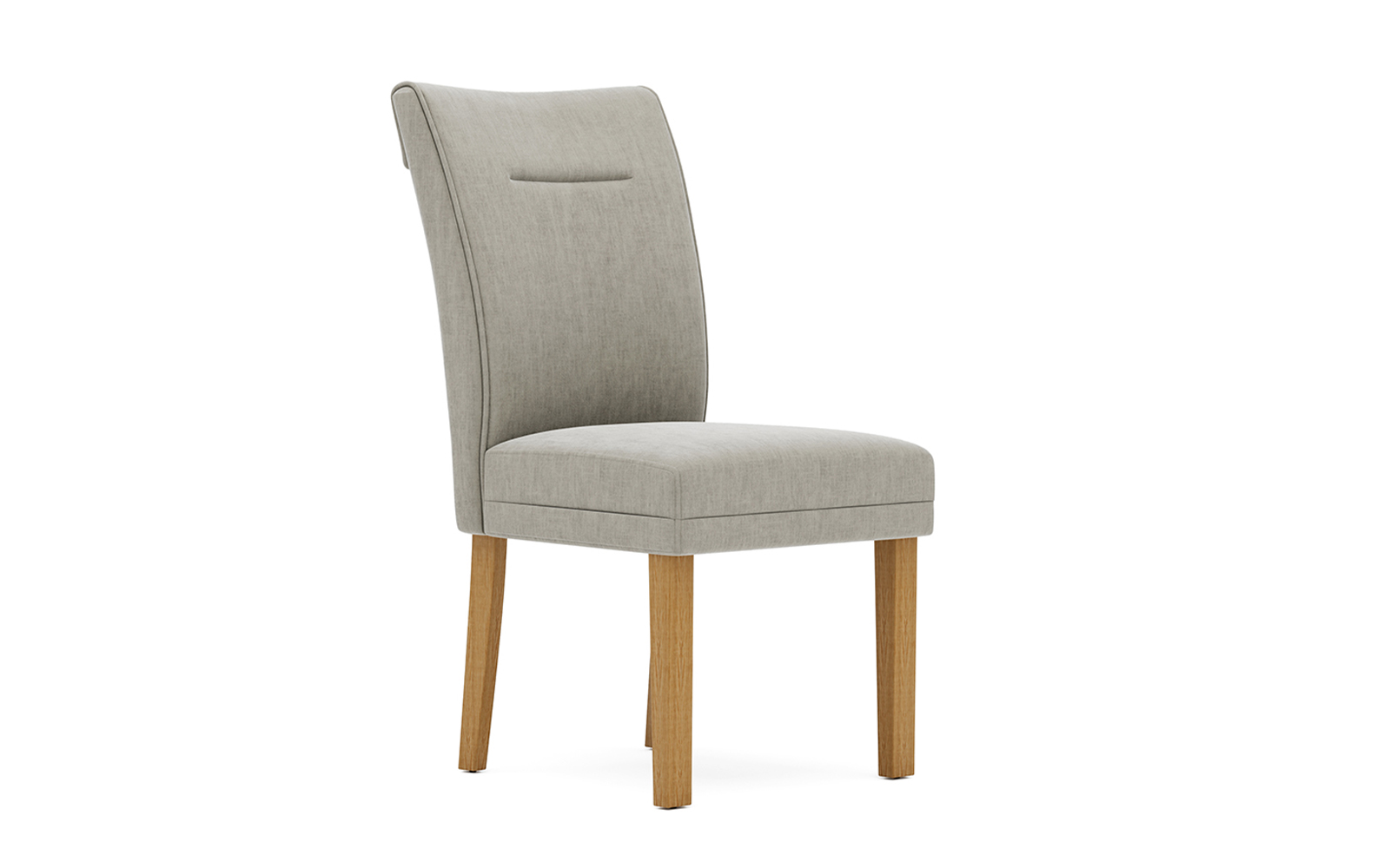 Tapițeria adaugă un plus de căldură și rafinament vizual, transformând scaunul într-un element ușor de integrat în diverse stiluri de amenajare, de la modern și contemporan până la clasic reinterpretat. Textura materialului este plăcută la atingere, iar aspectul său contribuie la crearea unei atmosfere primitoare și echilibrate. Picioarele din lemn completează designul printr-un contrast subtil între materialele utilizate, oferind în același timp stabilitate și rezistență.