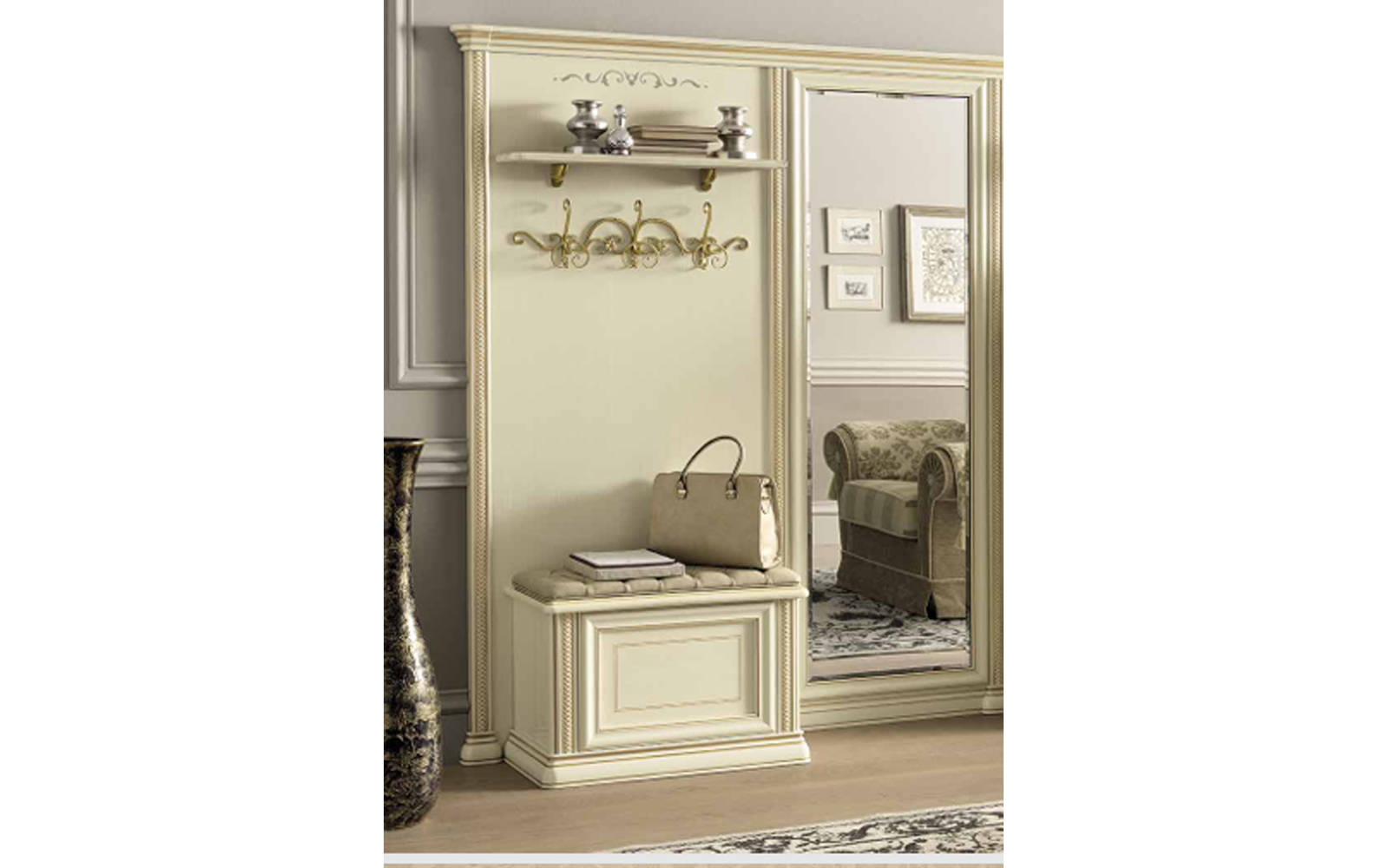Setul de hol Caterina face parte dintr-o colecție amplă de mobilier în același stil, care include vitrine, comode, dulapuri și mese elegante, toate în finisajul caracteristic crem antichizat. Astfel, puteți crea o amenajare unitară, coerentă și rafinată în întreaga locuință, păstrând același limbaj estetic și aceeași senzație de confort clasic reinterpretat.