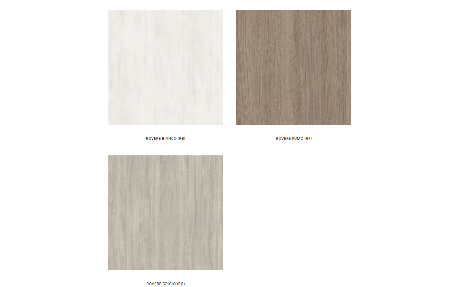 • Finisaje disponibile: Rovere Bianco / Rovere Fumo / Rovere Gri