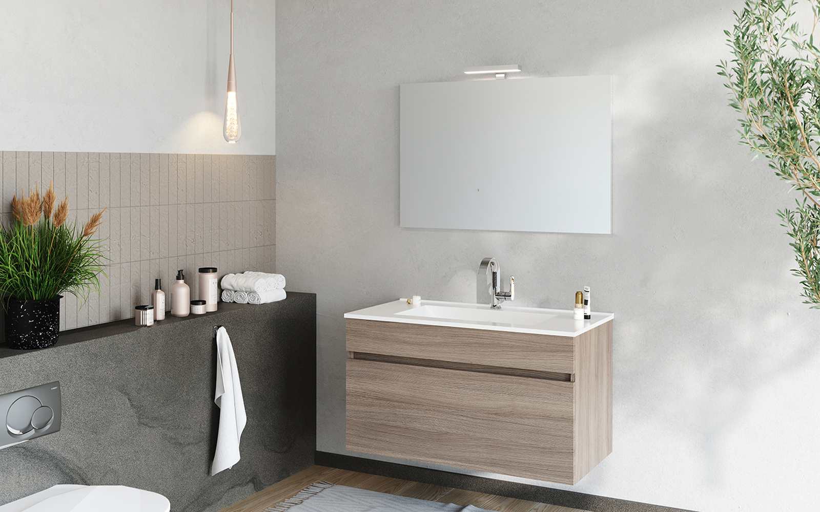 Setul Salta este disponibil într-o gamă variată de dimensiuni — 60, 80, 90, 100 și 120 cm — ceea ce permite adaptarea perfectă la diferite tipuri de băi, de la spații compacte până la amenajări generoase. Variantele de 120 cm pot include configurații cu două lavoare, ideale pentru utilizarea simultană și pentru un plus de confort în băile de familie.