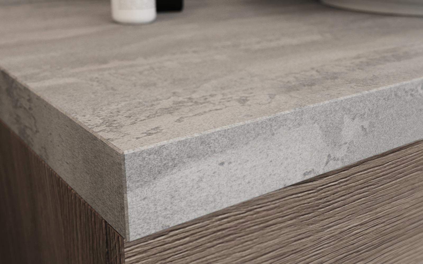 Ansamblul este realizat din materiale atent selecționate pentru rezistență în mediul umed specific băii, oferind stabilitate structurală și o utilizare îndelungată. Fronturile și suprafețele în finisaje Rovere Bianco, Rovere Fumo sau Rovere Gri aduc o notă caldă și rafinată, ușor de integrat atât în băi minimaliste, cât și în amenajări contemporane cu accente naturale.