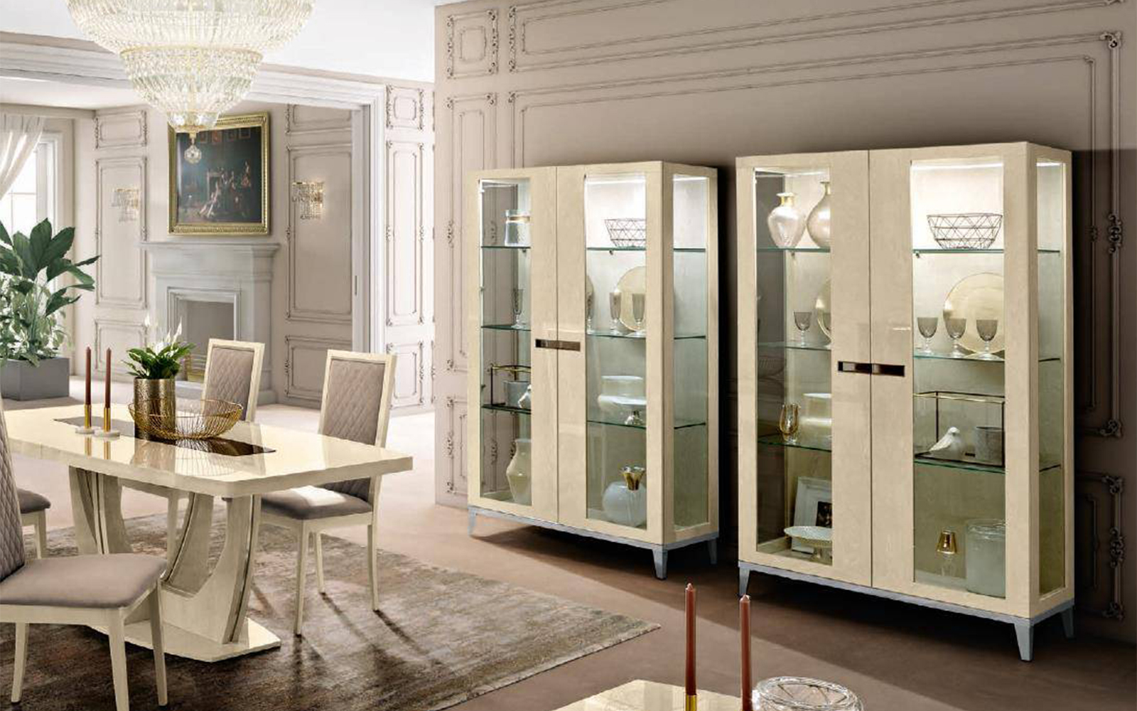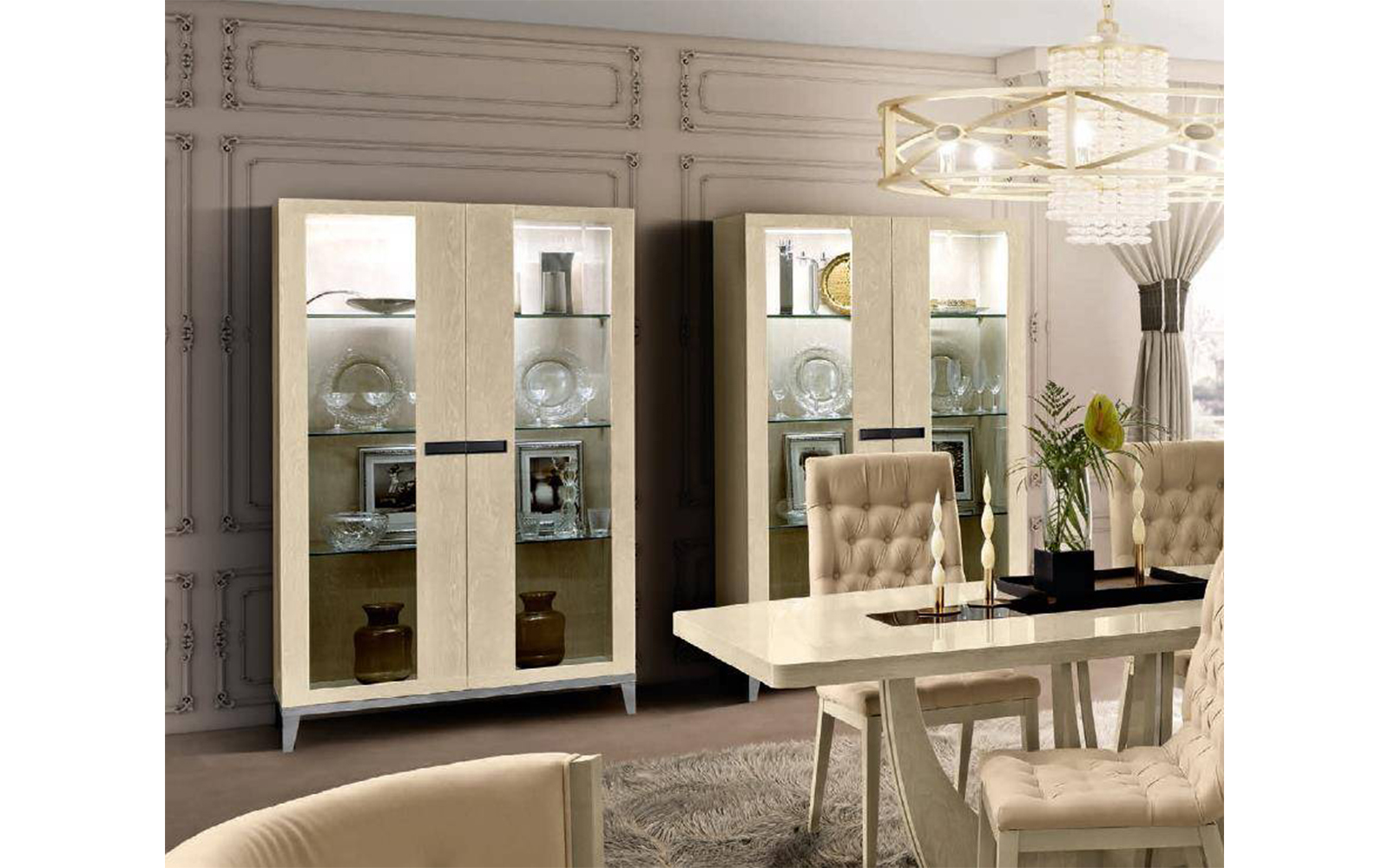 Designul colecției Almira se remarcă prin linii curate, finisaje atent lucrate și un rafinament subtil care pune accent pe luminozitate și echilibru vizual. Vitrina păstrează aceste caracteristici definitorii, devenind nu doar o piesă de mobilier practică, ci și un obiect decorativ în sine.