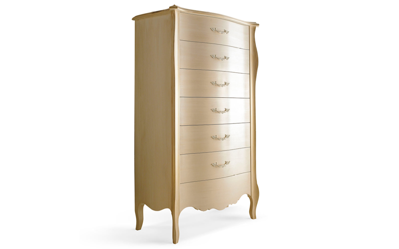 Realizată integral din lemn masiv și finisată cu măiestrie artizanală, vitrina Liberty impresionează prin silueta sa ușor bombată și liniile elegante care evocă noblețea stilului clasic reinterpretat. Structura generoasă este pusă în valoare de două uși vitrate încadrate de o ramă delicat sculptată, care adaugă un plus de profunzime și caracter. Cele patru rafturi din sticlă naturală permit o expunere luminoasă și aerisită a obiectelor de preț – fie că este vorba de porțelan fin, cărți rare sau piese decorative.