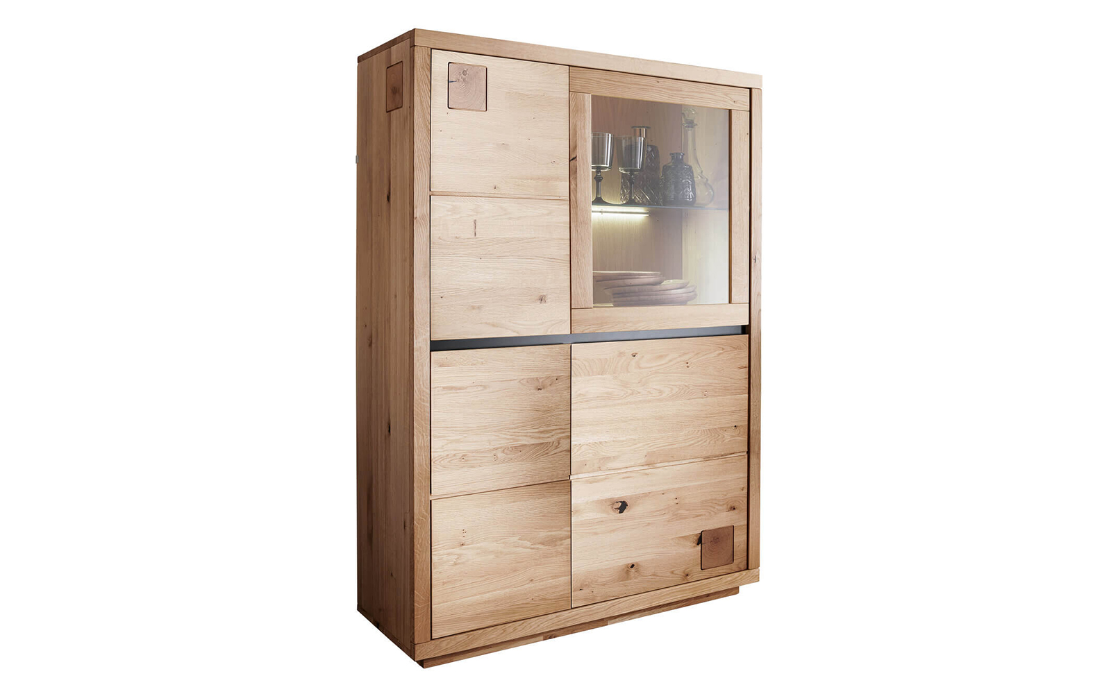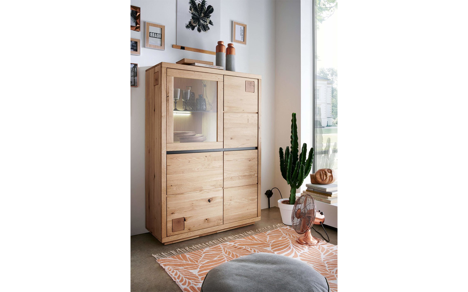 Vitrina Urban Loft este o piesă de mobilier elegantă și practică, creată pentru a aduce în locuință echilibrul perfect dintre funcționalitate și estetică. Construită din stejar masiv, vitrina evidențiază frumusețea naturală a lemnului, punând în valoare fiecare fibră, nod și variație de culoare, astfel încât fiecare piesă devine unică și irepetabilă.