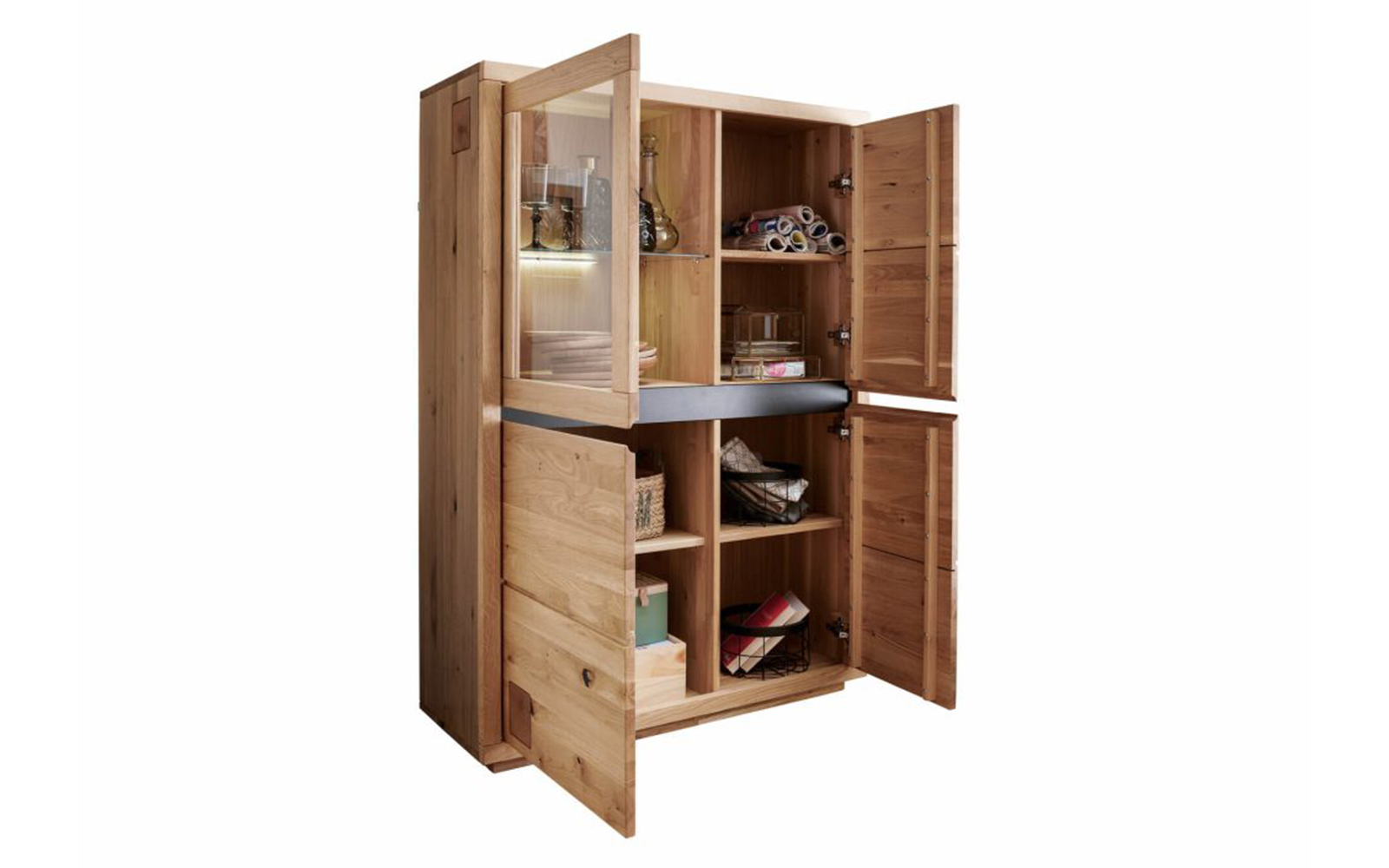 • Îmbină spații de depozitare închise cu o secțiune vitrată pentru expunere elegantă