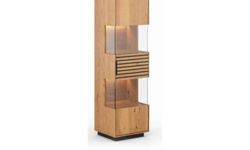 Prețul inițial a fost: 33.700,00 lei.25.269,00 leiPrețul curent este: 25.269,00 lei.Vitrină Tress II, Stejar Masiv, 2 Uși, 83 x 39 x 147 cm