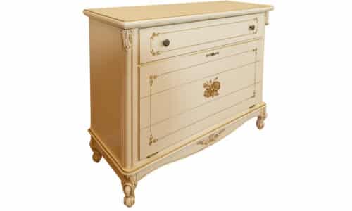 Prețul inițial a fost: 29.500,00 lei.19.189,00 leiPrețul curent este: 19.189,00 lei.Comodă Ophelia, Lemn Masiv, Pictură Manuală, 123 x 50 x 98 cm