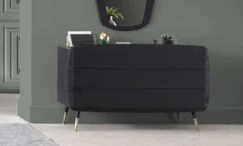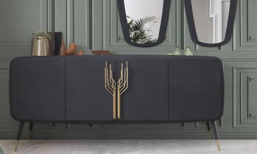 Prețul inițial a fost: 26.000,00 lei.17.450,00 leiPrețul curent este: 17.450,00 lei.Comodă Beca, Antracit-Auriu, 123 x 55 x 76 cm