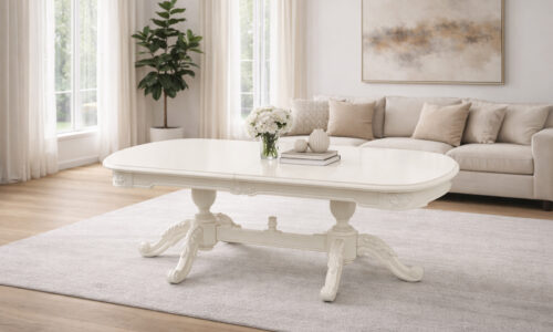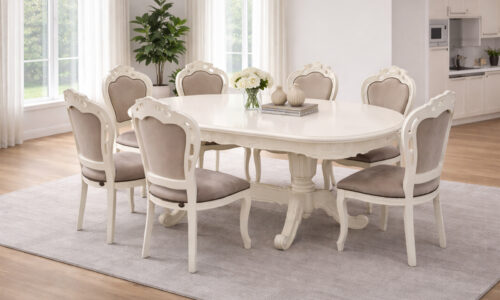 Prețul inițial a fost: 5.700,00 lei.3.890,00 leiPrețul curent este: 3.890,00 lei.Masa de dining Briston, Extensibilă, Lemn Masiv, Alb