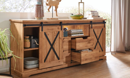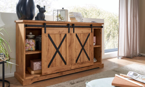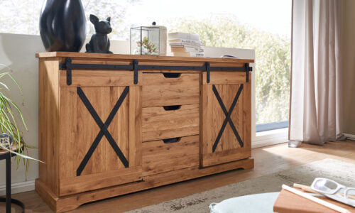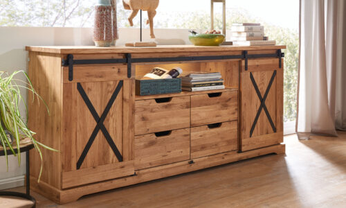 Prețul inițial a fost: 12.300,00 lei.8.609,00 leiPrețul curent este: 8.609,00 lei.Comodă Denver, lemn masiv, cu uși glisante, 209×94×51 cm