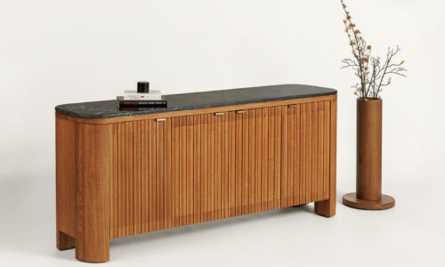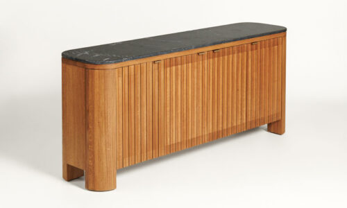 Prețul inițial a fost: 26.000,00 lei.17.450,00 leiPrețul curent este: 17.450,00 lei.Comodă Saphira din lemn masiv și marmură, 180×45×70 cm