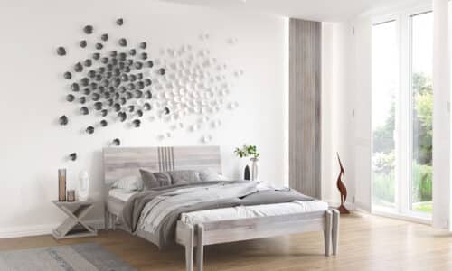 • Finisaj rafinat în tonuri neutre de gri, ușor de integrat în dormitoare contemporane